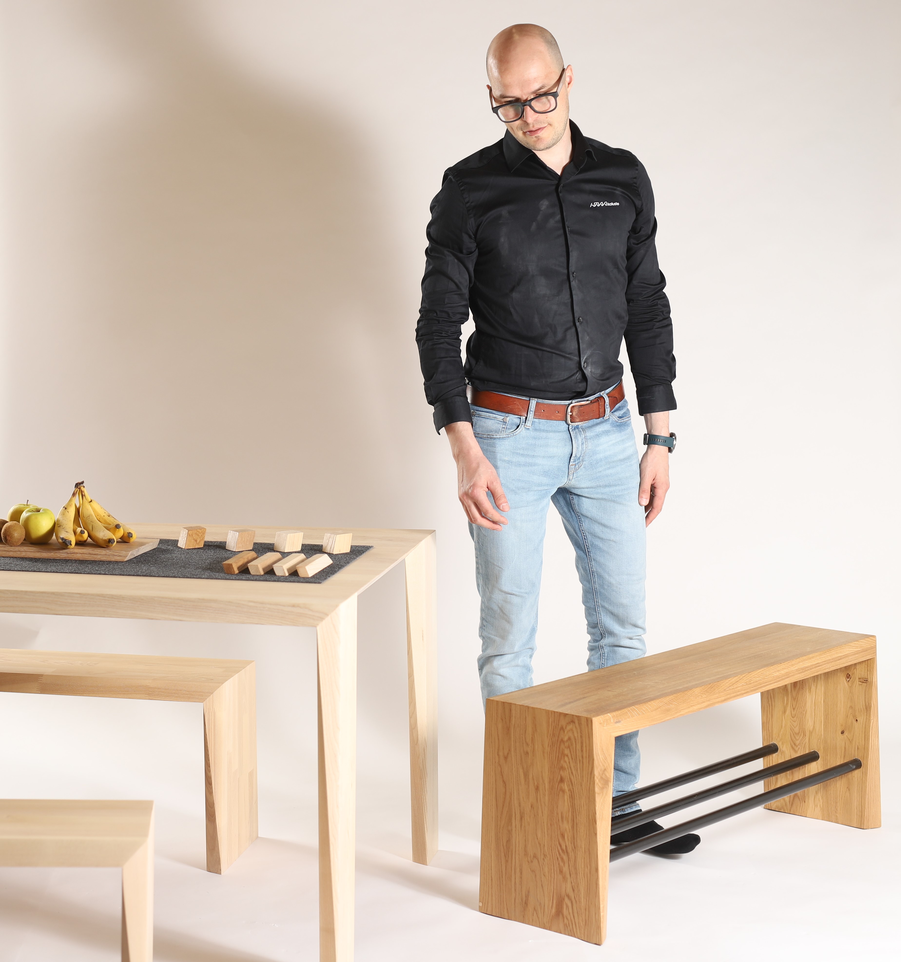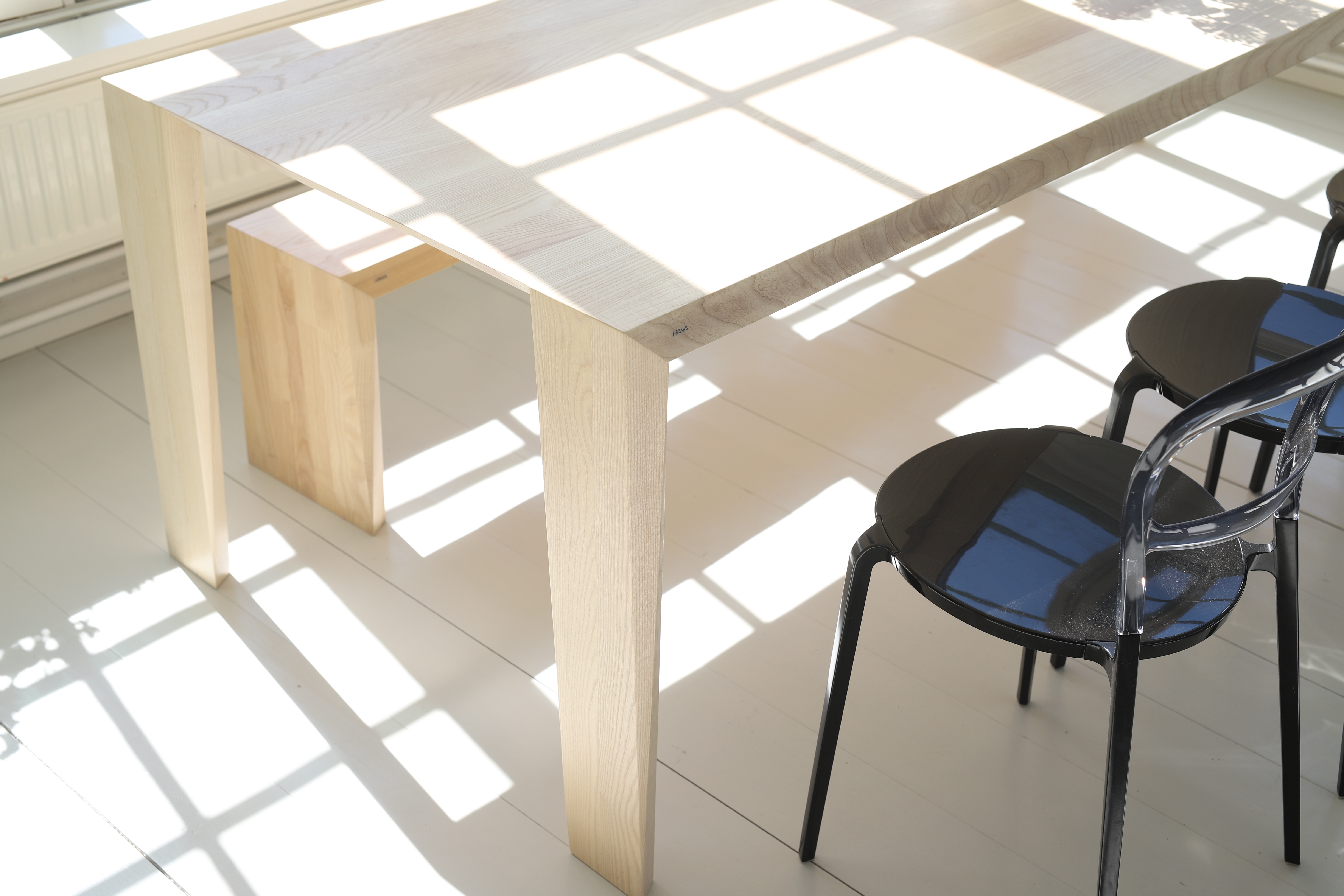 Zalmiak Bench fascinates with its edgy design. It has a light profile and a solid body.Its sharp corners make the light refract beautifully on its wooden surface.